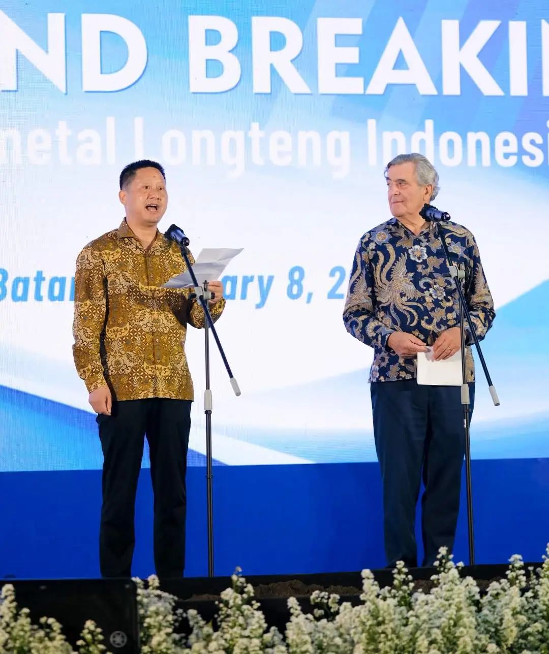 印尼金屬工業(yè)部長Rizky Aditya Wijaya 、巴塘縣縣長代表人Margo Santosa 、巴塘工業(yè)區(qū)董事長 Ngurah Wirawan 、龍騰特鋼集團董事長季丙元、總裁徐勝以及合資公司主要領導出席儀式。